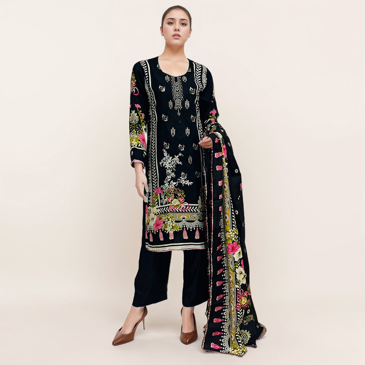 Top quality accessories embellished with stitched women’s Pakistani clothes are wholesale from Chicago per the client’s requirement: laces/buttons/inner lining.
