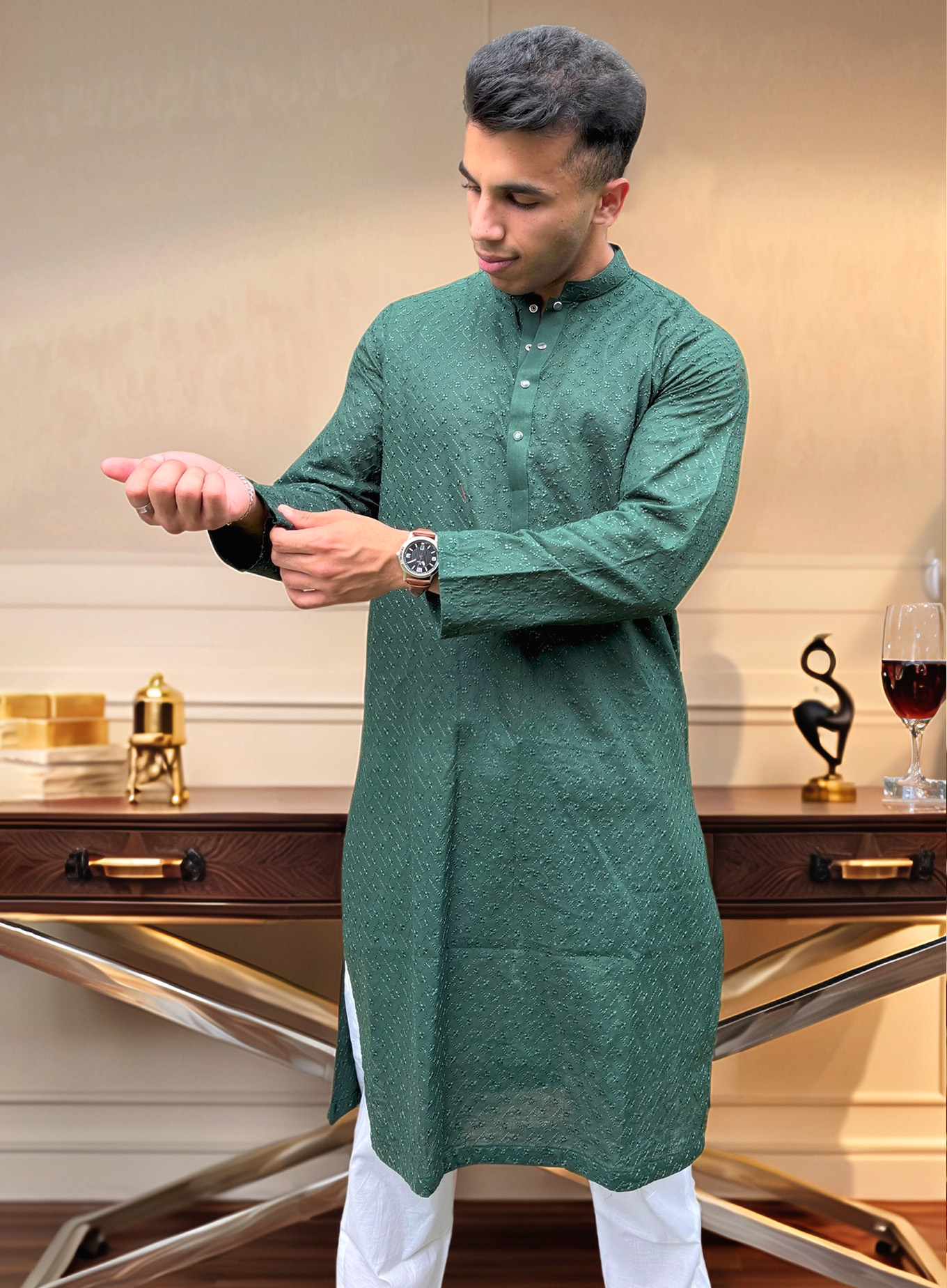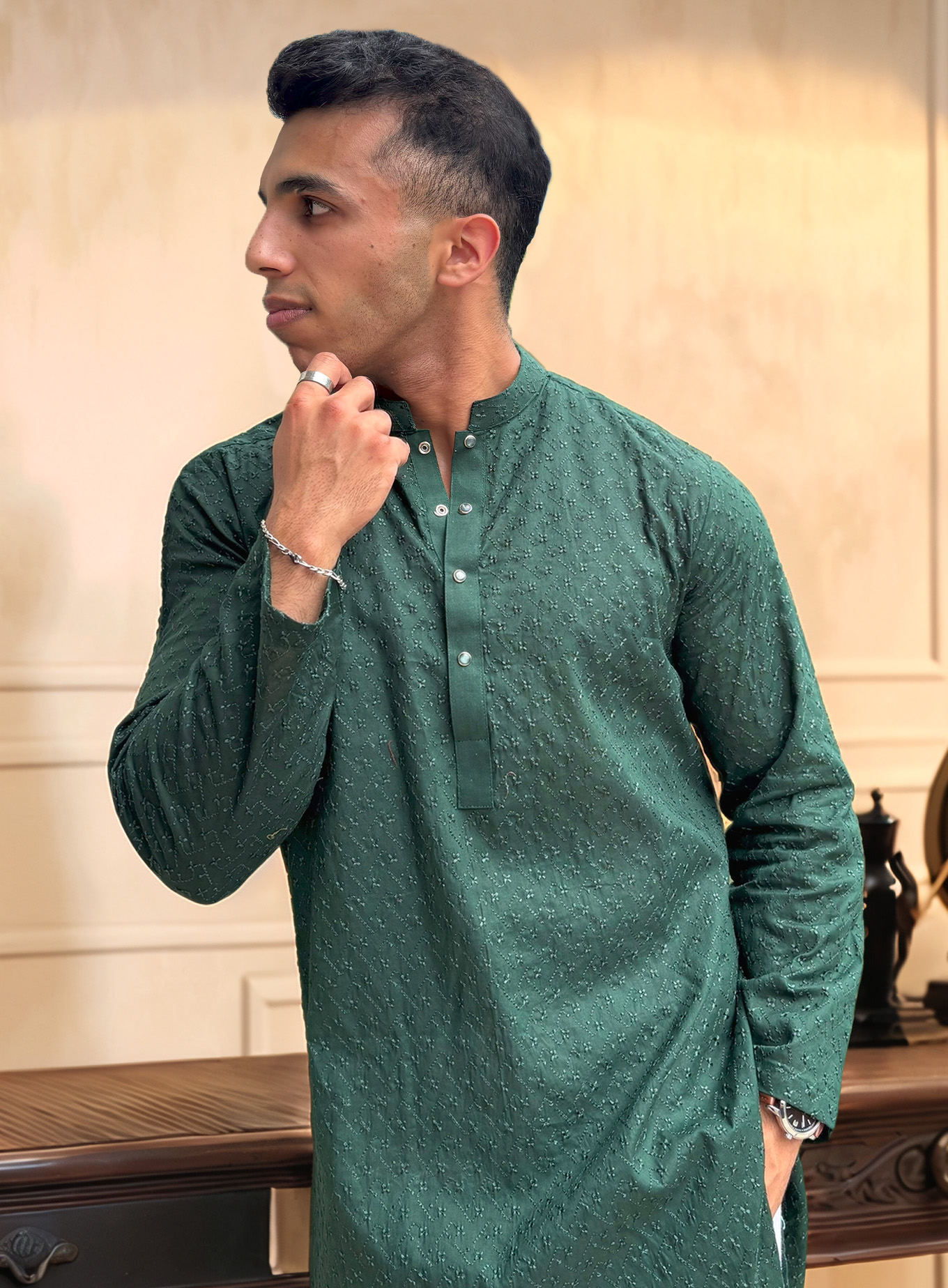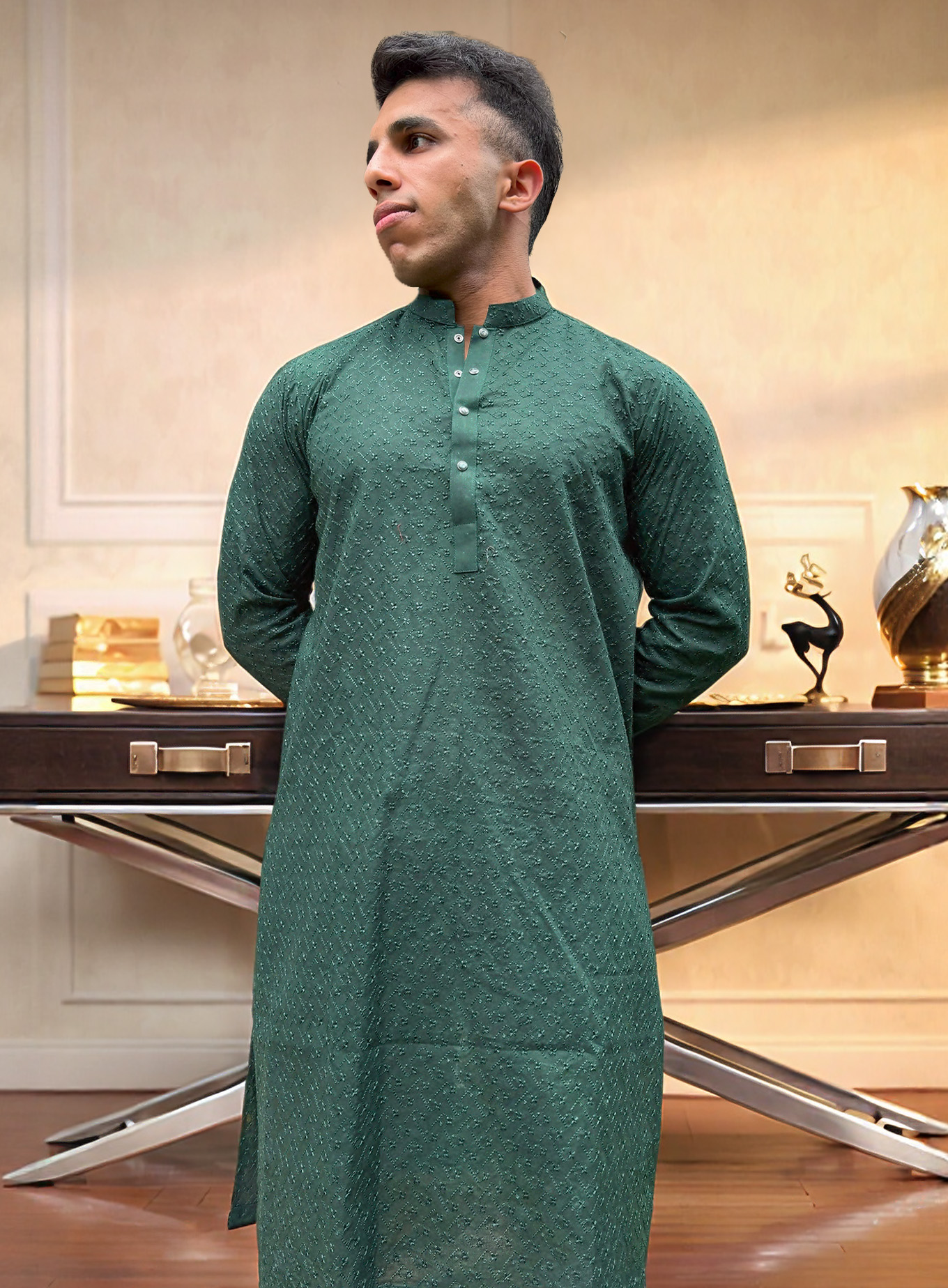Step into elegance with this green Chikankari embroidered men’s kurta Canada collection piece. Made with fine hand embroidery, this kurta reflects tradition with a modern touch. The rich green color adds charm, making it a perfect choice for festive events, weddings, or casual gatherings.