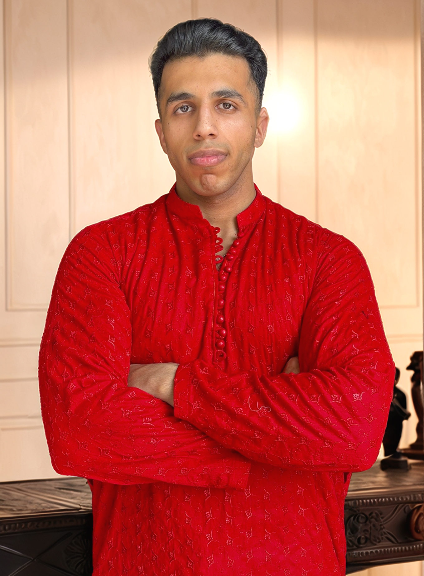 Step out in style with this high-quality orange cotton Chikankari kurta Canada. Designed with fine hand embroidery, this kurta combines tradition and elegance for modern men who value comfort and class.