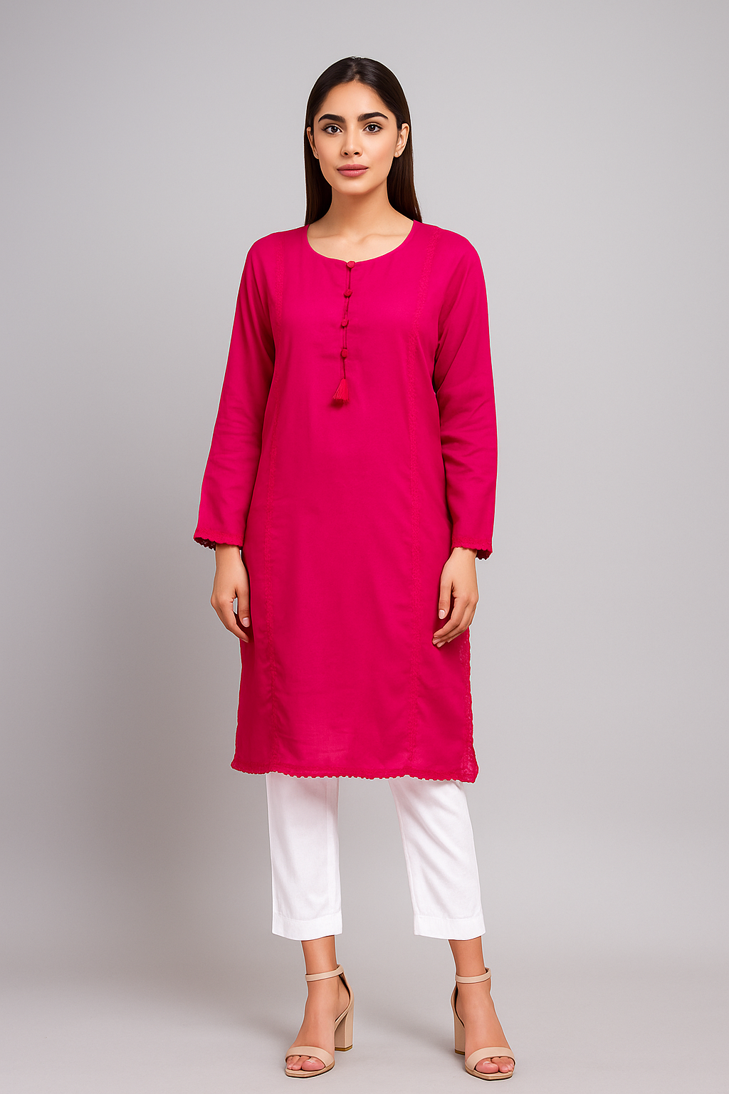 Add a vibrant touch to your ethnic wear collection with the Pinkish Red Wholesale Ethnic Linen Kurtis Canada. This high-quality linen kurti offers a perfect balance of elegance and comfort. The rich pinkish-red color makes it a standout piece, ideal for any occasion.