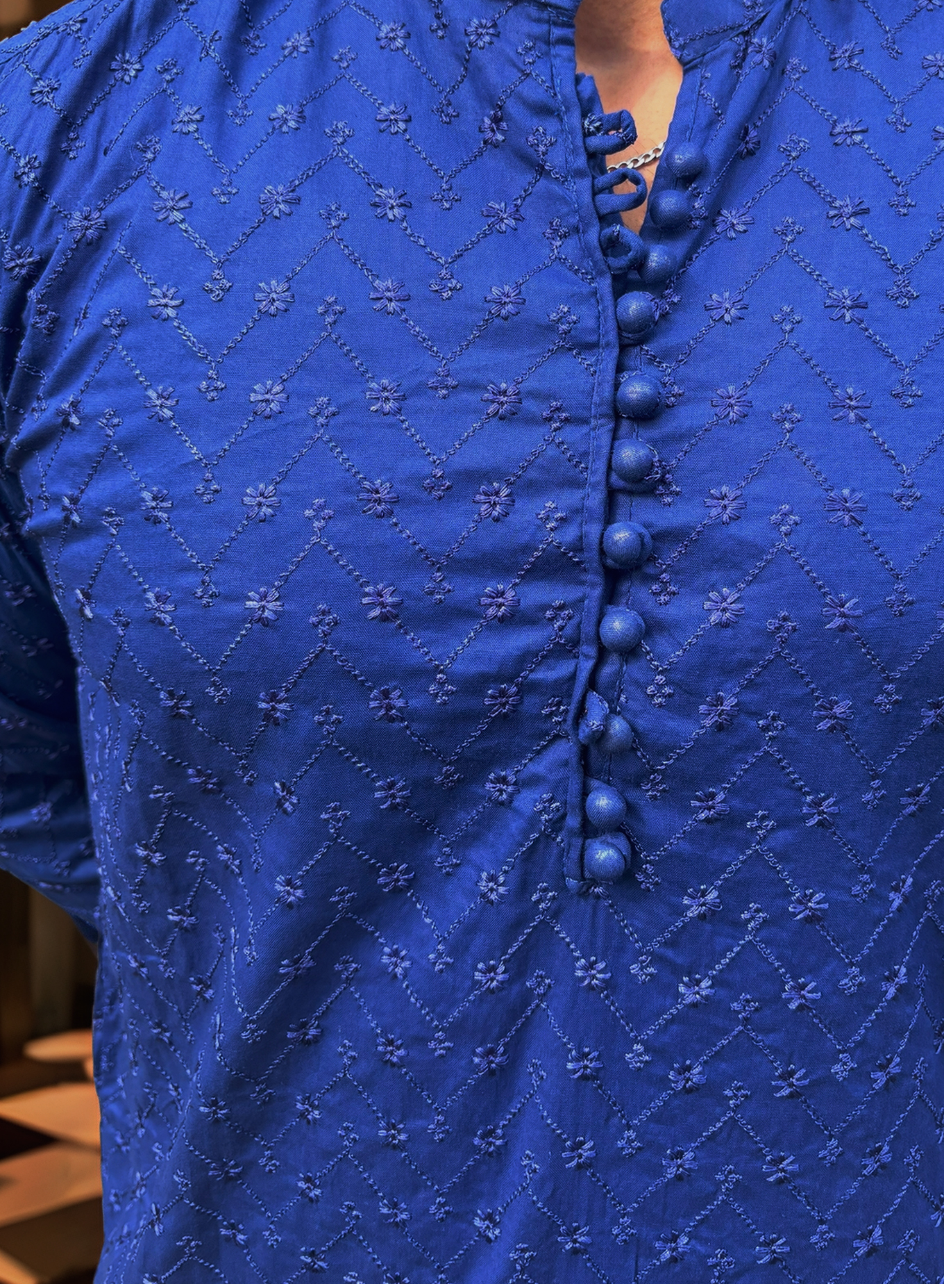 Bring style and tradition together with this royal blue Chikankari kurta for men Canada. Made with high-quality fabric, this kurta features elegant fine chikankari embroidery that adds a touch of class to your look. The royal blue shade makes it perfect for festive occasions, weddings, or cultural events.